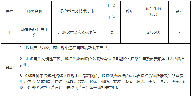 項目名稱:福建省漳州市某醫(yī)院關(guān)于康復(fù)醫(yī)療信息平臺項目的公開招標(biāo)公告