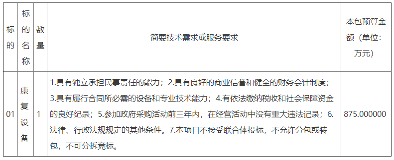 項目名稱:甘肅省康復(fù)中心(新區(qū))醫(yī)院專用設(shè)備采購項目(二次)公開招標(biāo)公告