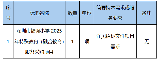 深圳市福強(qiáng)小學(xué)2025年特殊教育(融合教育)服務(wù)采購項(xiàng)目招標(biāo)公告