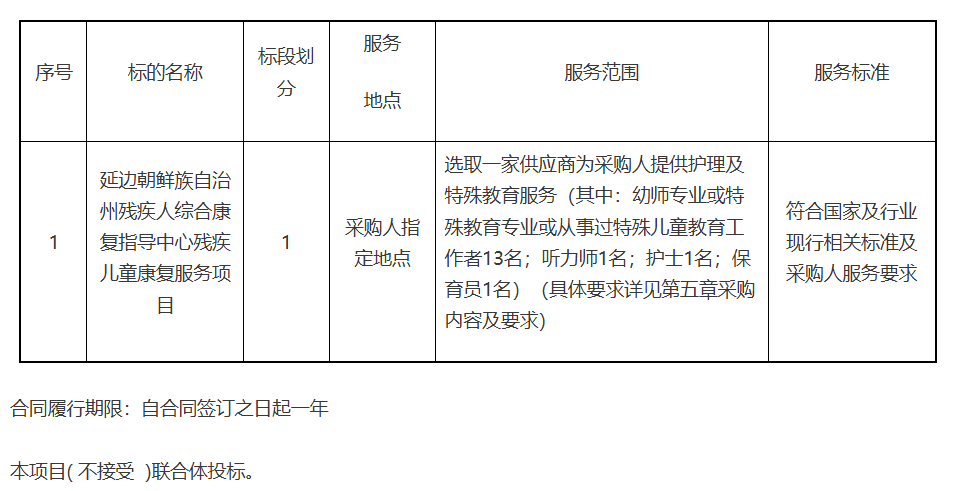 延邊朝鮮族自治州殘疾人綜合康復(fù)指導(dǎo)中心殘疾兒童康復(fù)服務(wù)項(xiàng)目競(jìng)爭(zhēng)性磋商公告
