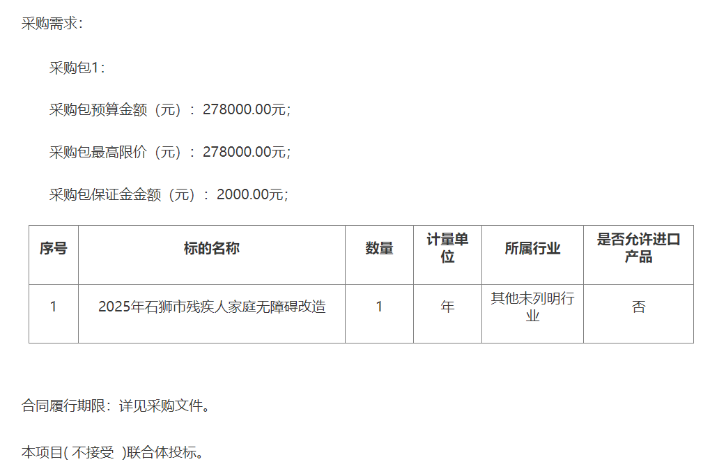 石獅市殘疾人聯(lián)合會(huì)2025年石獅市殘疾人家庭無(wú)障礙改造競(jìng)爭(zhēng)性磋商采購(gòu)公告