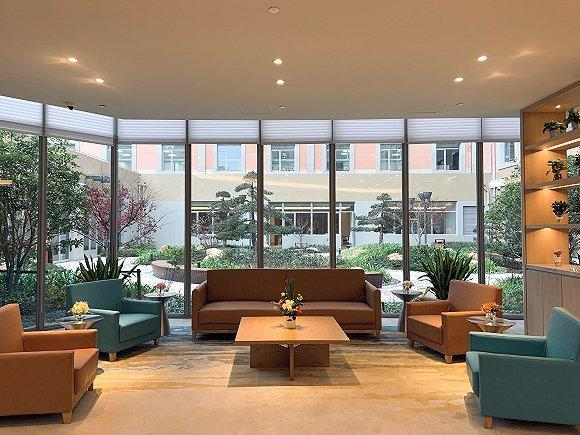 考慮到長者的身心特點,醫(yī)院室內外均采取無障礙設計,并對就醫(yī)動線進行了清晰規(guī)劃。落地觀景走廊設計,綠色與木色等色彩的調和營造出輕松溫暖的就醫(yī)氛圍。所有家具采用圓角設計、隨處可見的扶手和緊急呼叫系統(tǒng),將適老化細節(jié)做到極致。