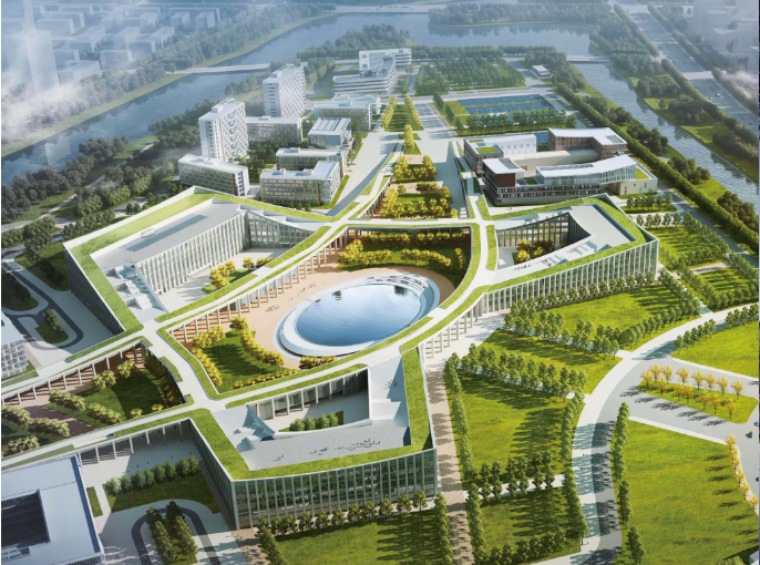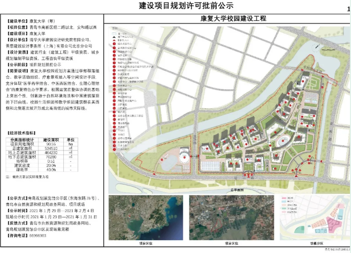 據(jù)悉,康復(fù)大學(xué)項目位于青島高新區(qū),項目用地面積90.56公頃,總建筑面積534510平方米,在建筑設(shè)計上,校園生活組團(tuán)和教學(xué)組團(tuán)建筑群將形成北高南低的城市天際線。