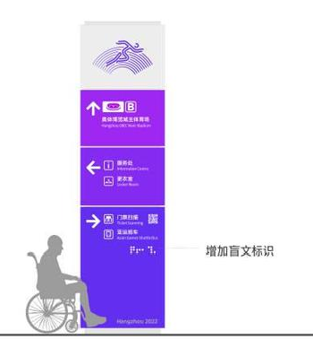 近期,杭州亞運會、亞殘運會發(fā)布了引導(dǎo)標(biāo)識系統(tǒng)基礎(chǔ)元素設(shè)計,增加了可觸摸的盲文標(biāo)識,便于視覺障礙者使用。