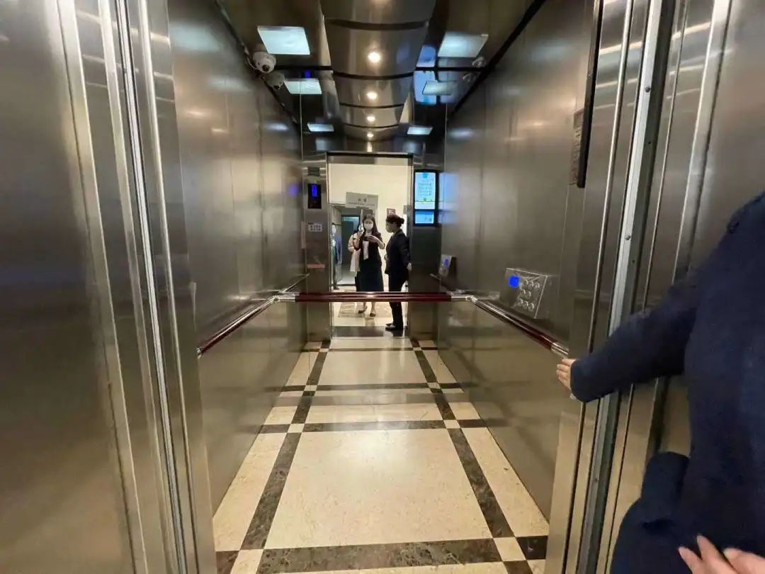 這是一臺無障礙電梯,扶手及按鈕的高度恰到好處,門的寬度讓輪椅人士也能輕松通行。