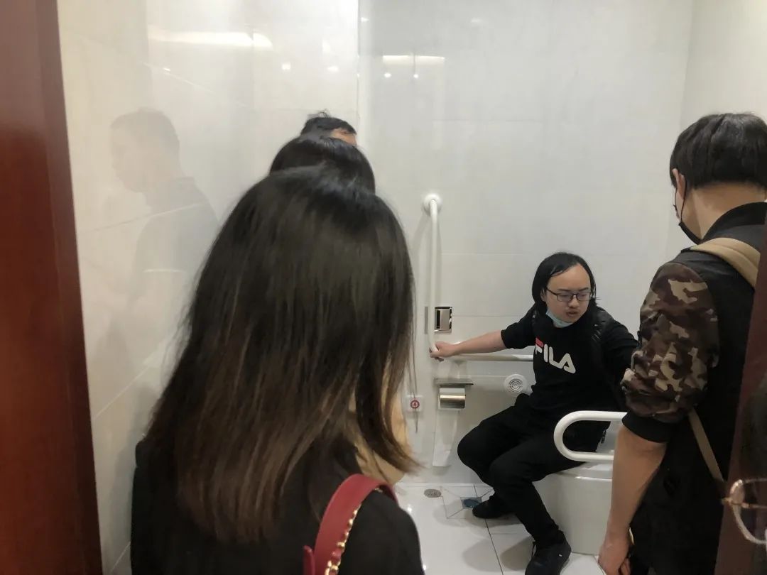 ▲ 參觀團(tuán)體驗無障礙衛(wèi)生間