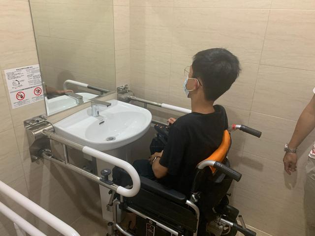 作為首位親身試用者,小方也在一些細(xì)節(jié)方面向紀(jì)念館提出建議:“如果要提建議的話,我覺得無障礙洗手間的門建議改成推拉門,這樣坐著輪椅開門關(guān)門會(huì)更方便些。”