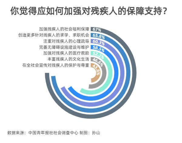 67.0%受訪者建議加強殘疾人的社會福利保障