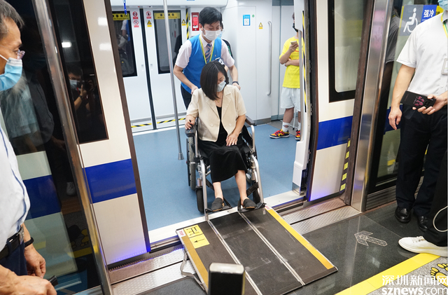 在深圳華新地鐵站,張永安重點(diǎn)查看地鐵站的無障礙通道、無障礙洗手間、輪椅進(jìn)出車廂的踏板等無障礙設(shè)施,了解無障礙設(shè)施是否真正發(fā)揮了作用,是否符合9月1日生效的《深圳經(jīng)濟(jì)特區(qū)無障礙城市建設(shè)條例》。