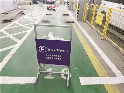 昨天,記者去蓮花港河地下停車(chē)場(chǎng)現(xiàn)場(chǎng)走訪(fǎng),發(fā)現(xiàn)這里共有885個(gè)公共泊位,其中有18個(gè)是“無(wú)障礙專(zhuān)用車(chē)位”。車(chē)庫(kù)的各個(gè)通道路口,還有墻壁上,都有“無(wú)障礙”指示牌。目前,這些專(zhuān)用車(chē)位都用藍(lán)色的牌子攔起來(lái)了,工作人員告訴記者,它們都是專(zhuān)人專(zhuān)用,登記過(guò)的殘疾人司機(jī)開(kāi)車(chē)進(jìn)來(lái),工作人員就會(huì)把車(chē)子引導(dǎo)到車(chē)位上。