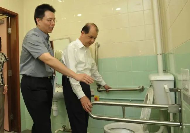 特區(qū)政府領(lǐng)導(dǎo)視察體育館內(nèi)的暢通易達(dá)洗手間