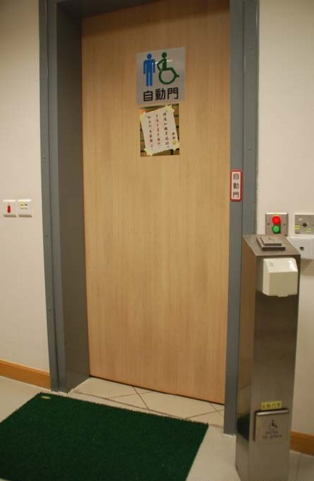 無障礙廁所的自動(dòng)門,殘疾人可以用手和腳方便的開、關(guān)門