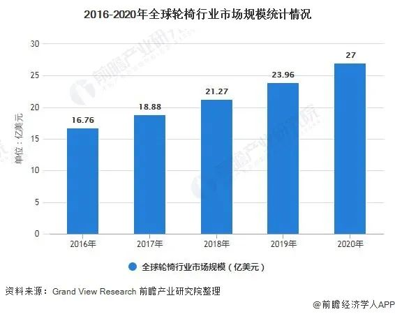 由于人口老齡化,老年醫(yī)學(xué)人口的增加對輪椅市場需求的擴(kuò)張,以及車禍數(shù)量的增加,全球輪椅市場規(guī)模逐年上升。