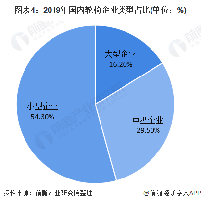從企業(yè)類型角度看,我國國內(nèi)輪椅行業(yè)以小型企業(yè)為主,大型醫(yī)療器械企業(yè)輪椅業(yè)務(wù)占比較小,多為附帶業(yè)務(wù),從輪椅企業(yè)來看,截止2019年,我國輪椅行業(yè)大型企業(yè)占比16.2%,中型企業(yè)占比29.5%,小型企業(yè)占比54.3%。