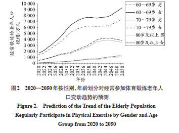 摘要:運(yùn)用人口預(yù)測(cè)和增長(zhǎng)曲線擬合方法,利用2018年國(guó)家統(tǒng)計(jì)局1‰人口抽樣調(diào)查數(shù)據(jù)和2018年《中國(guó)老年社會(huì)追蹤調(diào)查》數(shù)據(jù),對(duì)我國(guó)經(jīng)常參加體育鍛煉的老年人口規(guī)模和結(jié)構(gòu)等狀況進(jìn)行發(fā)展趨勢(shì)預(yù)測(cè)分析。結(jié)果顯示,我國(guó)經(jīng)常參加體育鍛煉的老年人口總規(guī)模將持續(xù)增長(zhǎng),預(yù)測(cè)到“十四五”末期將增長(zhǎng)至8 471萬人,到2035年達(dá)到1.9億人,2050年達(dá)到2.6億人。未來一段時(shí)期內(nèi),經(jīng)常參加體育鍛煉的老年人口年齡結(jié)構(gòu)將進(jìn)一步老化,參與各類體育活動(dòng)的人口數(shù)量將快速增長(zhǎng),對(duì)鍛煉場(chǎng)地、專業(yè)組織和指導(dǎo)人員的需求顯著增加。