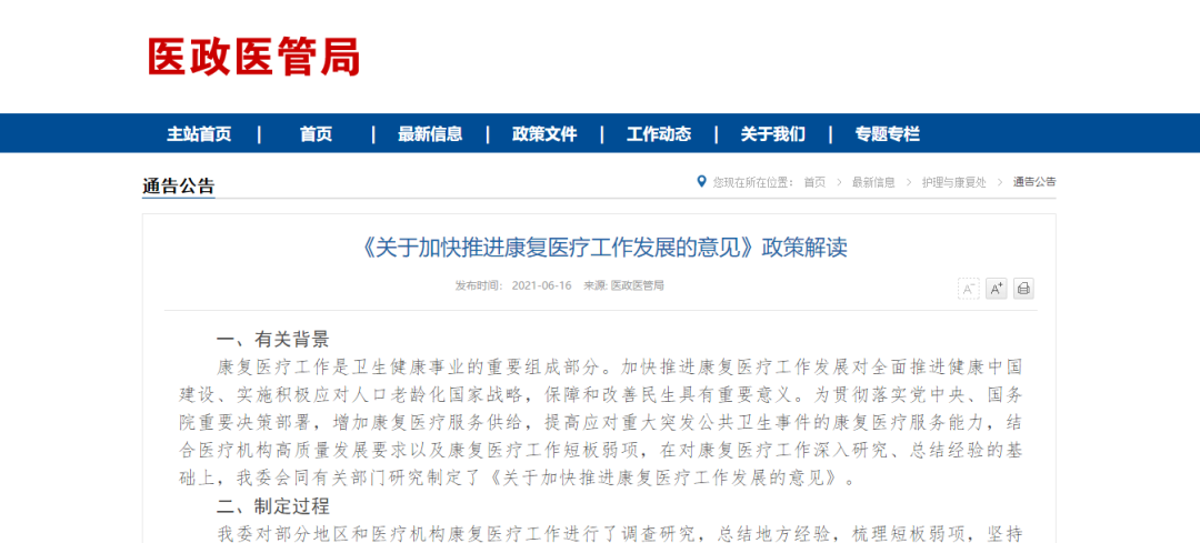 為貫徹落實黨的十九屆五中全會精神和實施健康中國、積極應(yīng)對人口老齡化的國家戰(zhàn)略,進(jìn)一步加強康復(fù)醫(yī)療服務(wù)體系建設(shè),加快推動康復(fù)醫(yī)療服務(wù)高質(zhì)量發(fā)展,逐步滿足群眾多樣化、差異化的康復(fù)醫(yī)療服務(wù)需求,國家衛(wèi)生健康委、國家發(fā)展改革委、教育部、民政部、財政部、國家醫(yī)保局、國家中醫(yī)藥管理局、中國殘聯(lián)制定了《關(guān)于加快推進(jìn)康復(fù)醫(yī)療工作發(fā)展的意見》。