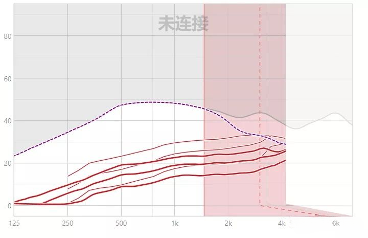 功率:助聽設(shè)備的最大補償能力,若該助聽器功率為90dB,則適用人群的聽力應(yīng)小于90dB。如下圖陰影范圍為該助聽器的功率。