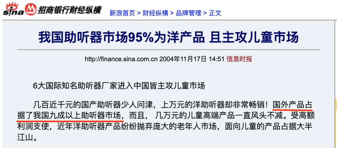 歐洲證券行業(yè)專業(yè)分析機(jī)構(gòu)卡內(nèi)基證券所分析,2004年中國(guó)僅有1000多家助聽(tīng)器驗(yàn)配店和服務(wù)機(jī)構(gòu),市場(chǎng)上的優(yōu)質(zhì)助聽(tīng)器僅為20萬(wàn)臺(tái),且9成以上為國(guó)外產(chǎn)品。