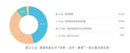 例如,當(dāng)問(wèn)及診療過(guò)程中的困難時(shí),63%的家長(zhǎng)認(rèn)為,“醫(yī)生不能解答更多問(wèn)題”,是就診過(guò)程中遇到的最多的困難,44%的家長(zhǎng)認(rèn)為,“需要定期復(fù)診,占用較多時(shí)間”。“醫(yī)生不能解答更多問(wèn)題”的原因可能是,兒童發(fā)展障礙的共患病問(wèn)題較多,很多情況下,單一科室的醫(yī)生難以給予精準(zhǔn)的診斷治療,因此,需要多學(xué)科間的協(xié)作。