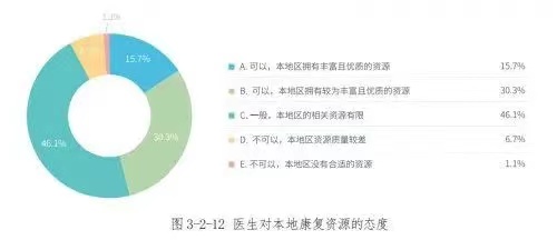 在漫漫康復(fù)路上,康復(fù)機(jī)構(gòu)往往承擔(dān)著重要的專業(yè)角色,但從專業(yè)醫(yī)生的角度出發(fā),康復(fù)服務(wù)的整體水平似乎不盡人意?!端{(lán)皮書(shū)》顯示,46.1%的醫(yī)生認(rèn)為當(dāng)?shù)氐南嚓P(guān)資源一般,占比最多。還有7.8%的醫(yī)生認(rèn)為,當(dāng)?shù)乜祻?fù)資源較差,甚至是沒(méi)有相關(guān)的資源,完全不可以滿足孩子的康復(fù)需求。