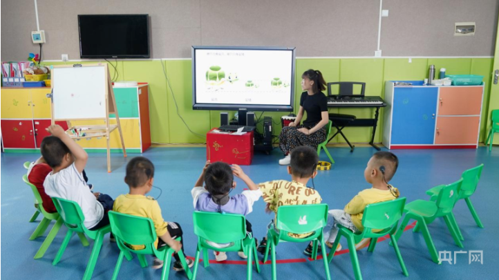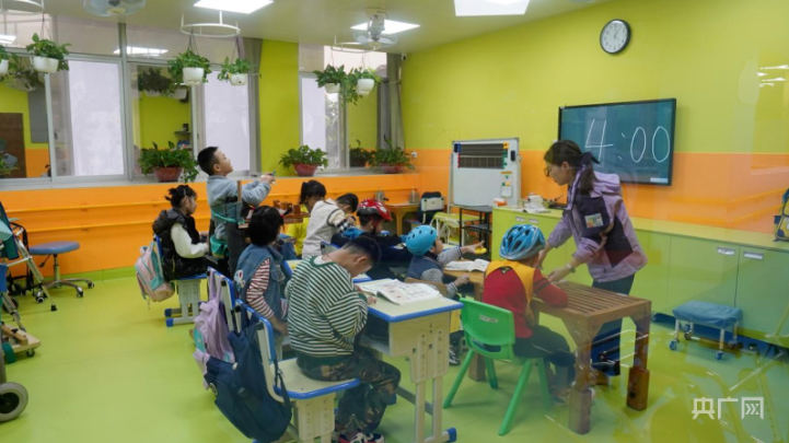 南寧市公益性殘疾兒童康復(fù)救助示范點,老師在海螺班給孩子們上課(央廣網(wǎng)記者 羅蘭 攝)