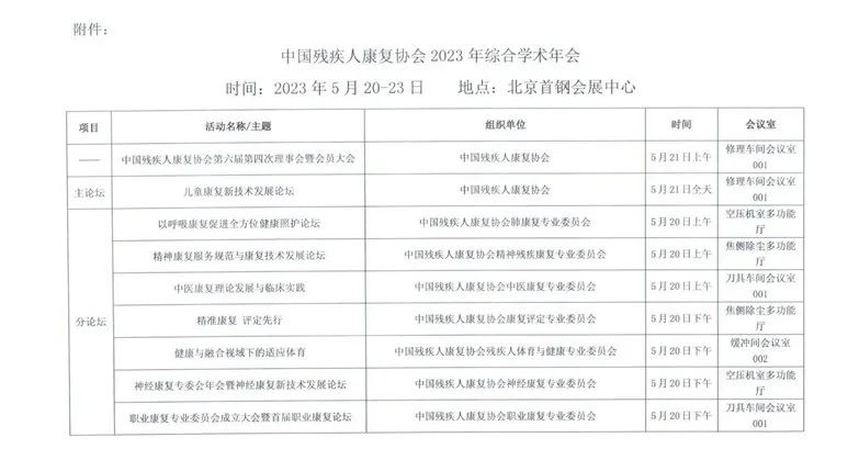 附件:中國(guó)殘疾人康復(fù)協(xié)會(huì)2023年綜合學(xué)術(shù)年會(huì)論壇安排明細(xì)表
