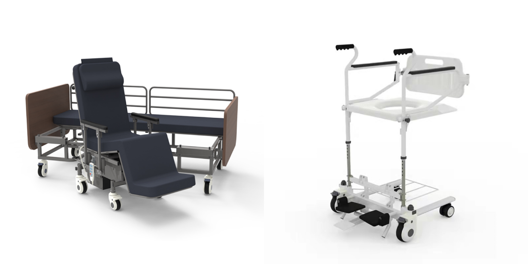該產(chǎn)品可協(xié)助失能人群在椅子床、沙發(fā)間變換位置,同時(shí)擁有輪椅、坐便、坐浴功能。適用與長期臥床、下身癱瘓、重度失能人群。