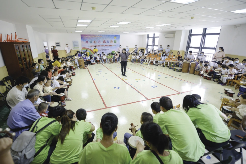 每次鼓聲響起,現(xiàn)場(chǎng)充滿溫馨與激情,孩子們敲打著手中的小鼓,跟著節(jié)奏賣力演奏;家長(zhǎng)們守護(hù)著身前的小孩,聽著指揮全心配合。“3、2、1,收!”指令一出,全場(chǎng)寂靜;“1、2,一起來!”隨即又是鼓聲激昂,逐漸氣勢(shì)澎湃……踩著鼓點(diǎn),孩子和家長(zhǎng)們一起敲散了生活的陰霾,敲響對(duì)美好未來的熱愛。
