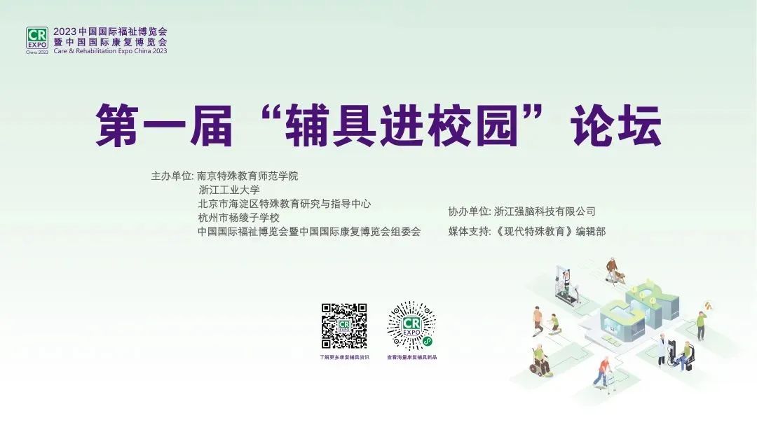 2022年8月9日,中國殘聯(lián)、教育部聯(lián)合發(fā)布《輔助器具進校園工程實施方案》,該方案明確指出“輔助器具是殘疾人克服障礙、改善功能,提高獨立生活、學習和工作能力的重要手段”。專業(yè)化、現(xiàn)代化的輔助器具成為殘疾兒童進入校園、適應班級、融入課堂的強有力保障。為深入貫徹落實黨中央要求,為殘疾學生提供科學的輔助器具設配和相關服務,提高殘疾兒童學習和生活的便利與有效性,提升融合教育質(zhì)量,推動特殊教育高質(zhì)量發(fā)展,第一屆“輔具進校園”論壇正式啟動。本屆論壇由南京特殊教育師范學院、浙江工業(yè)大學、北京市海淀區(qū)特殊教育研究與指導中心、杭州市楊綾子學校和中國國際福祉博覽會暨中國國際康復博覽會組委會聯(lián)合主辦,浙江強腦科技有限公司協(xié)辦,《現(xiàn)代特殊教育》雜志編輯部給予媒體支持。