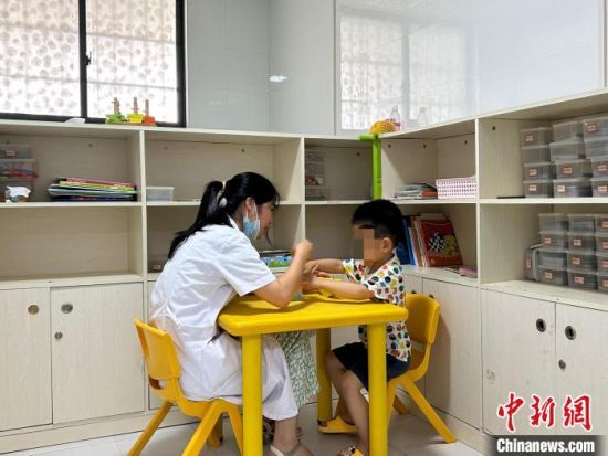 圖為康復(fù)老師與孩子面對(duì)面教學(xué)、互動(dòng)。 朱瑩 攝