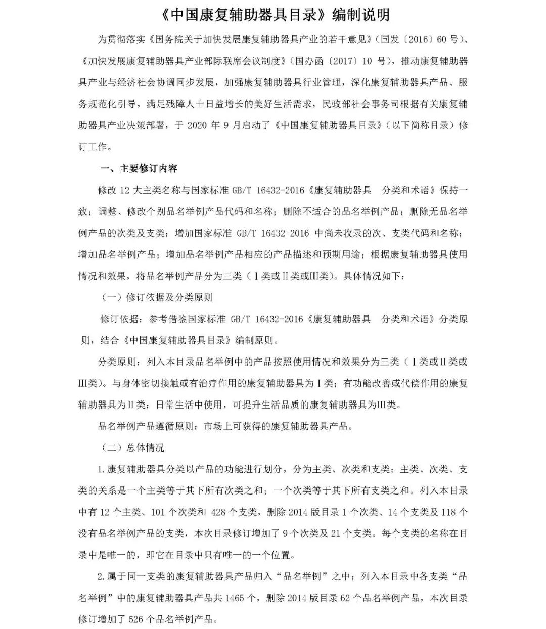2.中國康復輔助器具目錄(2023年修訂版征求意見稿)編制說明