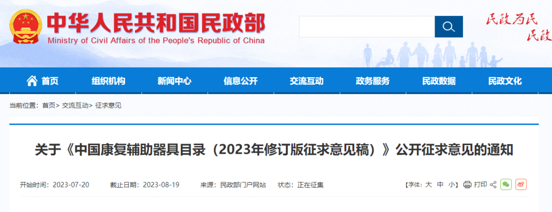 關于《中國康復輔助器具目錄(2023年修訂版征求意見稿)》公開征求意見的通知
