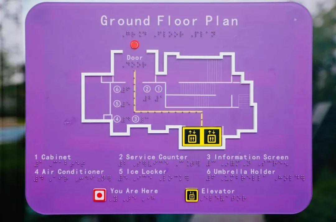杭州亞殘運村中還有超多無障礙設施和環(huán)境細節(jié)。盲道一直鋪設到公寓口,公寓入口的指示標識處就有盲文,電梯的所有按鈕也設置了盲文。