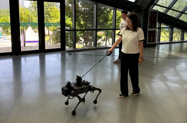 在拱墅運河體育公園體育場,正式比賽期間可以在場館內看到兩名特殊“志愿者”——“電子導盲犬”小西和小湖。它們由西湖大學機器智能實驗室研發(fā),主要為場館內的視障群體提供導航服務。