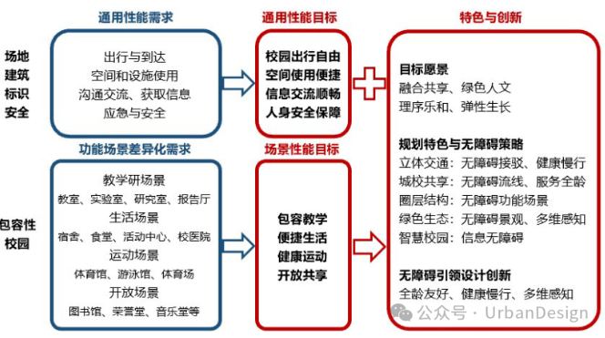 圖2 大學(xué)校園無障礙需求及性能目標(biāo)