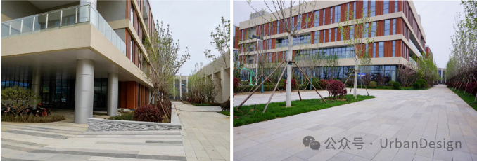 以中國人民大學(xué)通州新校區(qū)為例,該校區(qū)總用地 110 公頃,總建筑面積約 105 萬 m2,總體規(guī)劃呈一核兩軸多中心的框架體系, 3 條城市次干路穿行校園,成為重要的交通共享帶和城市界面,校園局部道路采用立體交通聯(lián)系,外圍城市干道設(shè)有地鐵站點。