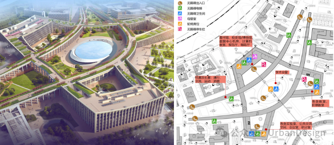 圖8 “創(chuàng)新核”鳥瞰圖及無障礙設(shè)施配置