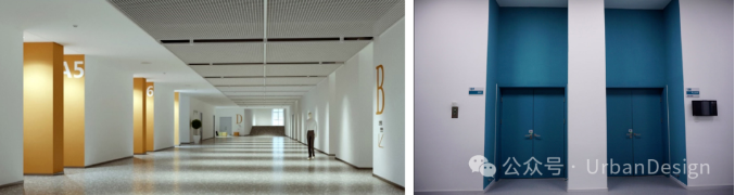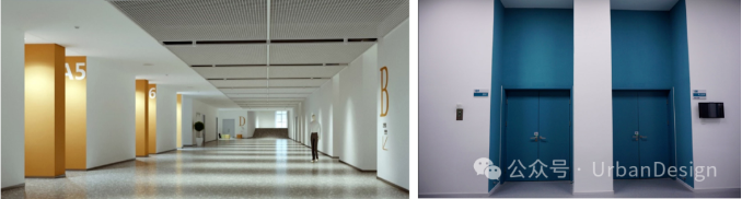 室內(nèi)通過色彩變化進行功能分區(qū),標(biāo)識采用大字體和高對比度形式(圖 14)。