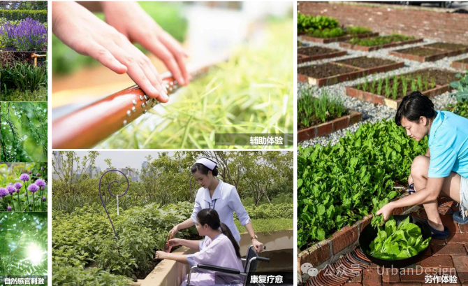 康復(fù)大學(xué)校園包容性設(shè)計中注重人的心理感受,充分發(fā)揮康復(fù)學(xué)科的特點,利用康復(fù)醫(yī)學(xué)、康復(fù)景觀學(xué)等相關(guān)理論,借助場地、空間與陽光、空氣、植物、土地的相互作用,采用園藝療法等療愈手段,利用植物栽培與園藝操作活動幫助有需要人士從其社會、教育、心理以及身體諸方面進行調(diào)整更新(圖 20)。