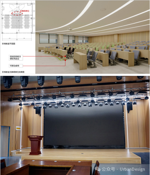 圖16 康復(fù)大學(xué)階梯教室輪椅席位和無障礙講臺