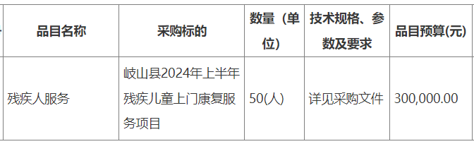 岐山縣2024年上半年殘疾兒童上門康復(fù)服務(wù)項目競爭性磋商公告