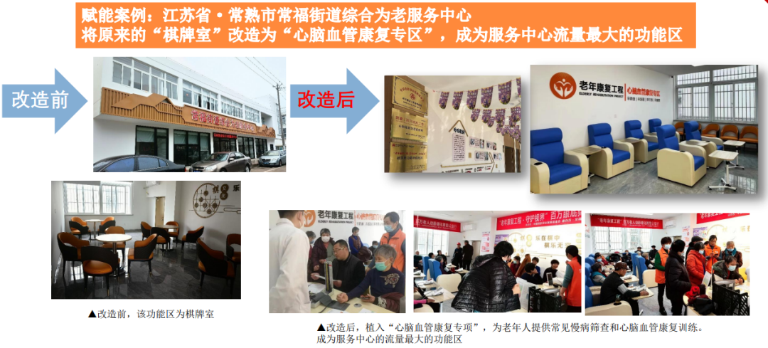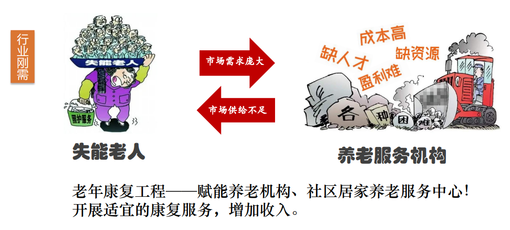 2.面向養(yǎng)老服務(wù)機構(gòu):幫助機構(gòu)引入康復(fù)工程,提升自身技術(shù)和品牌力;賦能康復(fù)項目模式和人才輸出;培育康復(fù)型養(yǎng)老服務(wù)機構(gòu),提高其服務(wù)能力和生存能力。