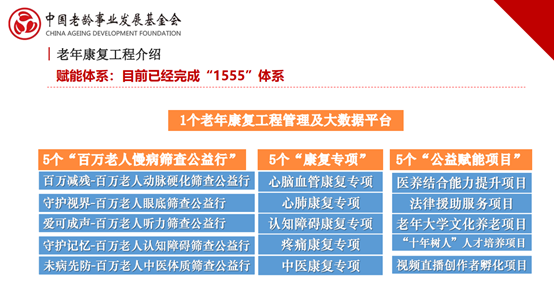 3.建設(shè)情況:截至目前,老年康復(fù)工程在全國共建設(shè)39家康復(fù)專項基地;超過400家養(yǎng)老服務(wù)機構(gòu)已啟動慢病篩查公益活動。