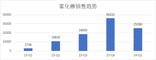 聚焦即時零售的“應(yīng)急”特點,2023年起康復(fù)之家即針對應(yīng)急用藥場景,開始在O2O渠道重點布局霧化器產(chǎn)品。通過在產(chǎn)品品牌、價格段、促銷活動等多方面著手,順應(yīng)了當(dāng)時的市場需求,銷售出現(xiàn)了井噴式增長;到24年第一季度疫情逐漸平穩(wěn),霧化器逐步進(jìn)入淡季,但是同比體量遠(yuǎn)超去年。