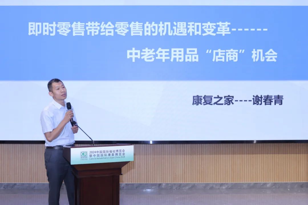 會議邀請康復(fù)之家健康管理集團(tuán) CEO謝春青作主題演講《即時零售帶給零售的機(jī)遇和變革——中老年用品“店商”機(jī)會》,著重分析了即時零售發(fā)展現(xiàn)狀、優(yōu)秀案例與所創(chuàng)機(jī)遇。當(dāng)前中老年輔具用品銷售有到店購買、B2C、即時零售、租賃等多種渠道。其中即時零售從應(yīng)急走向日常,迎來增長風(fēng)口,為中老年輔具用品“店商”發(fā)展給出新解法,將成為市場新藍(lán)海。接下來,福祉君為大家整理分享謝總的精彩演講。