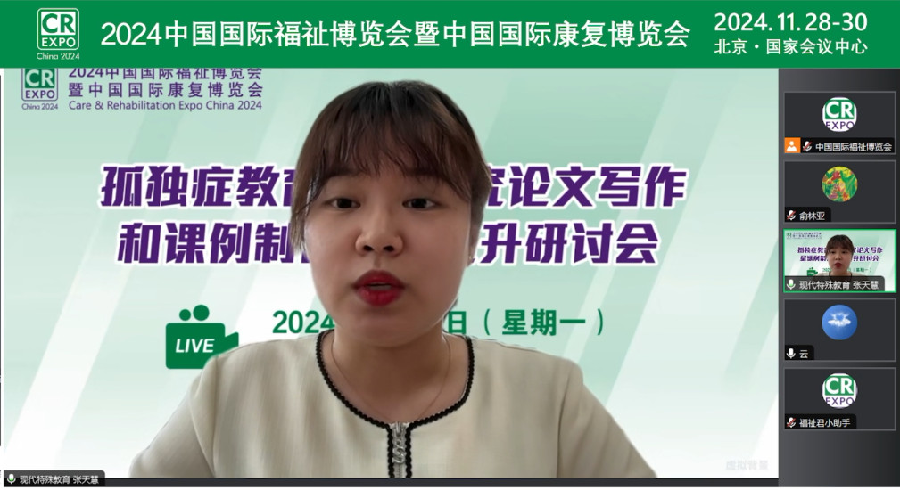《現(xiàn)代特殊教育》編輯部編輯張?zhí)旎蹏@論文的總體介紹與寫作要求展開分析,她提到中國(guó)教育學(xué)會(huì)特殊教育分會(huì)智障教育專委會(huì)等十家單位,在2024年3月27日開啟了第一屆孤獨(dú)癥教育教學(xué)研究論文征集?,F(xiàn)代特殊教育編輯部也特設(shè)了孤獨(dú)癥教育欄目,希望通過這樣的方式集思廣益、分享經(jīng)驗(yàn),共同研究孤獨(dú)癥教育的重要課題。