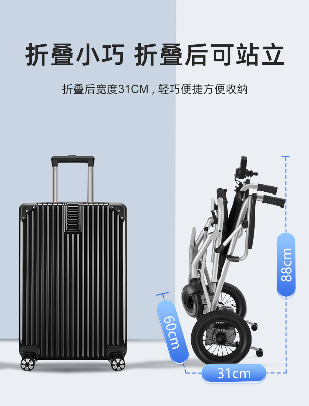8802為對折型輪椅,采用隱形折疊結構,簡潔美觀,車身對折后超薄超小巧,同時可以快拆大輪,無論是放在汽車后備箱,還是座位上都非常方便。