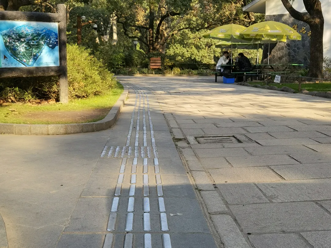 共青森林公園內(nèi)的盲道。圖源:上海發(fā)布