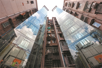 廣州黃花崗街道加裝電梯的樓宇。圖源:廣州日報(bào)