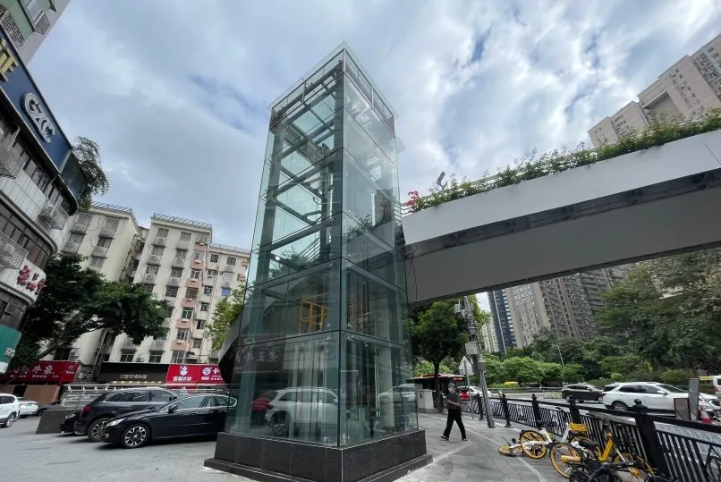 人行天橋配置無障礙電梯。圖源:廣州日報(bào)